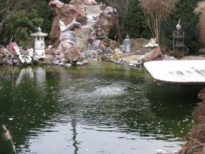 zuleitung von der pumpe bis zum teichrand 8 meter in 1 zoll schlauch, vom teichrand ins wasser 8mm innen......zwei ausströhmer.